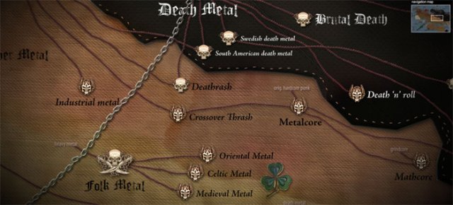 Bene è un onore per me presentarvi questo sito. E’ una… BOMBA per tutti gli amanti del metal. The map of Metal è un ottima tentativo per delineare e mettere un po di ordine in questo genere vasto come l’oceano. Con tanto di Hall of Fame per ogni singolo genere e sottogenere. Come funziona? è semplicissimo: