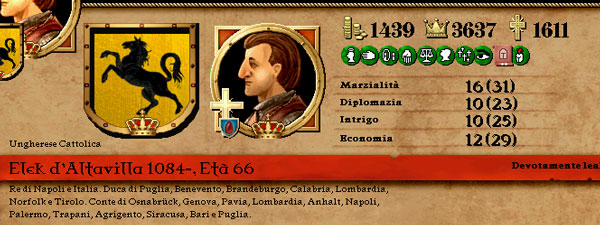 L’AAR parte da febbraio 1151… Elek D’altavilla è un buon regnante… e nei suoi quasi settant’anni di vita inizia a delineare quel che un giorno potrebbe diventire un grande regno… L’Italia.