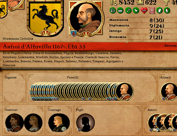Le rivendicazioni feudali sulle terre degli infedeli rende il Re di Napoli Controllore Papale, il quale combatte e conquista i territori nemici nel nome di Dio.