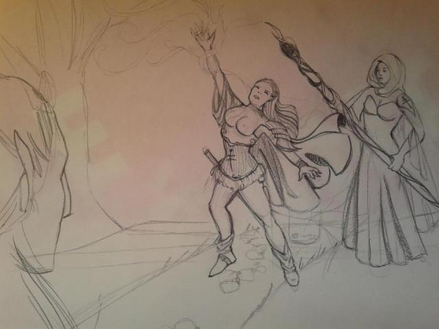 Just a really stupid sketch i drew in 4 minutes… it’s full of mistakes… i was thing to two female, one half elf, and the other human… the first is a sorceress, and the second a wizard. I guess i’ll draw another sketches about them… writing a short story inspired in the lands of the forgotten realms… You can use it if you want.