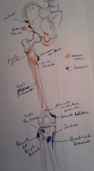 Origine- intersezione dei principali muscoli della coscia- utili per il disegno.