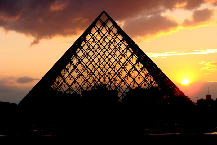 The Louvre Pyramid is a large glass and metal pyramid, surrounded by three smaller pyramids, in the main courtyard of the Louvre Palace. The large pyramid serves as the main entrance to the Louvre Museum. The Pyramid was commissioned by the President of France François Mitterrand in 1984, it was designed by the architect I. M. Pei.